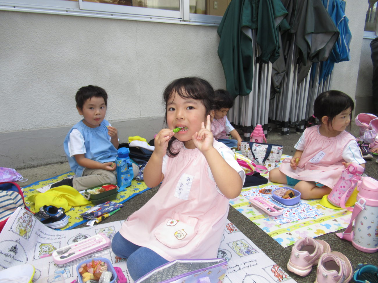 みんなでお外で食べるお弁当はおいしいね😊💛