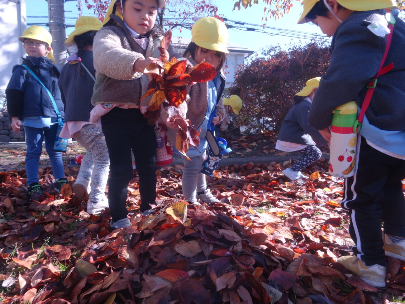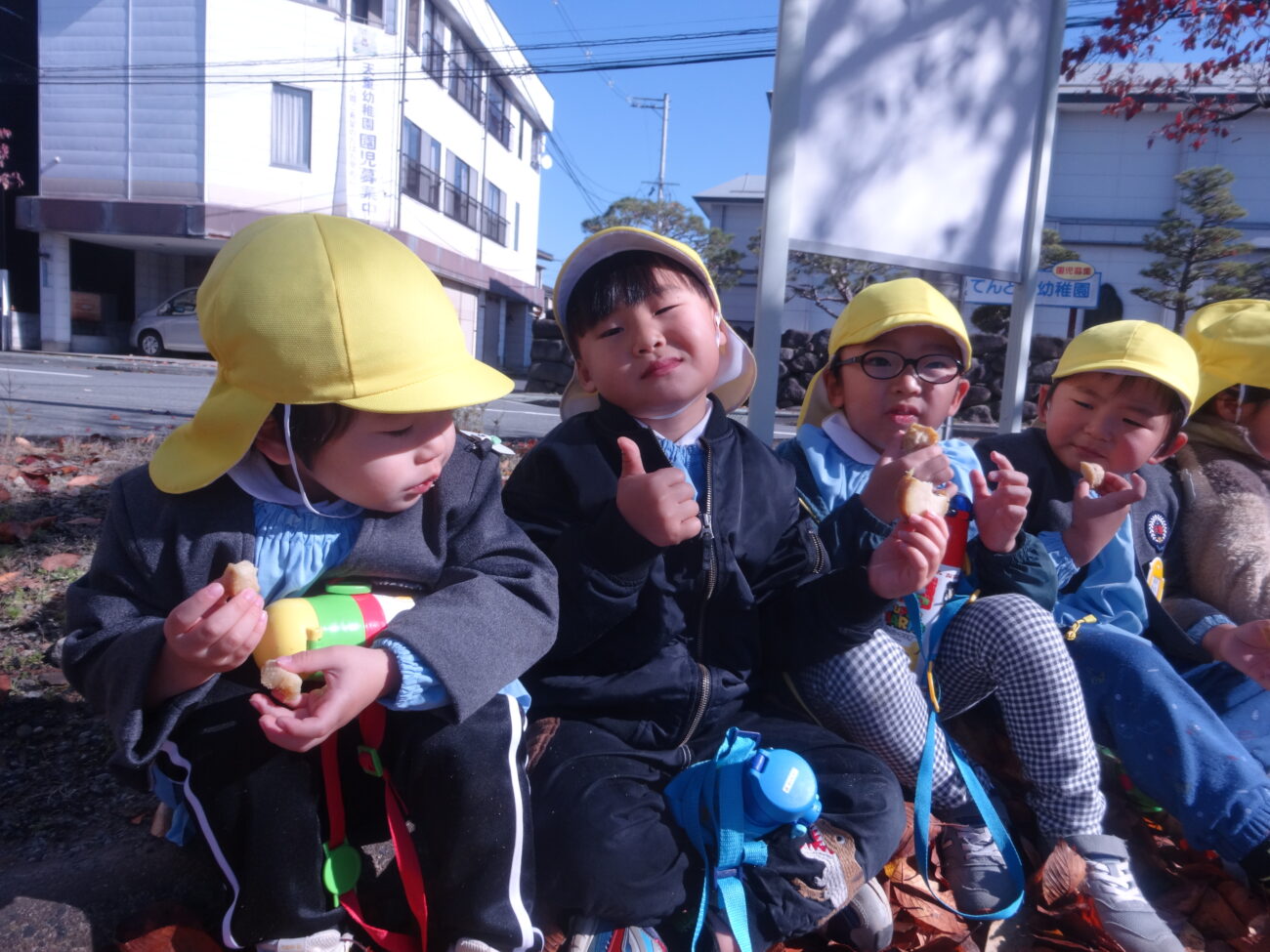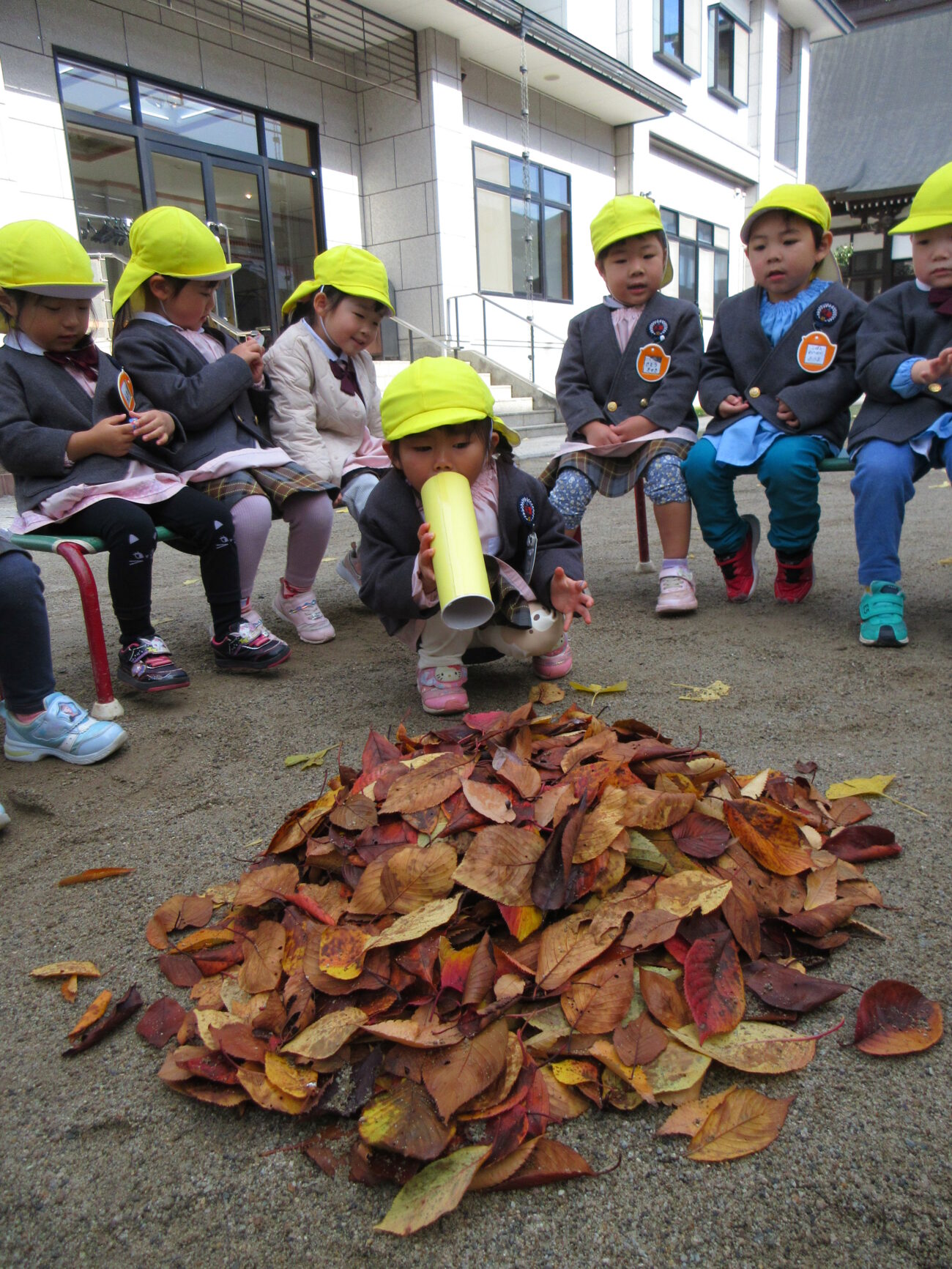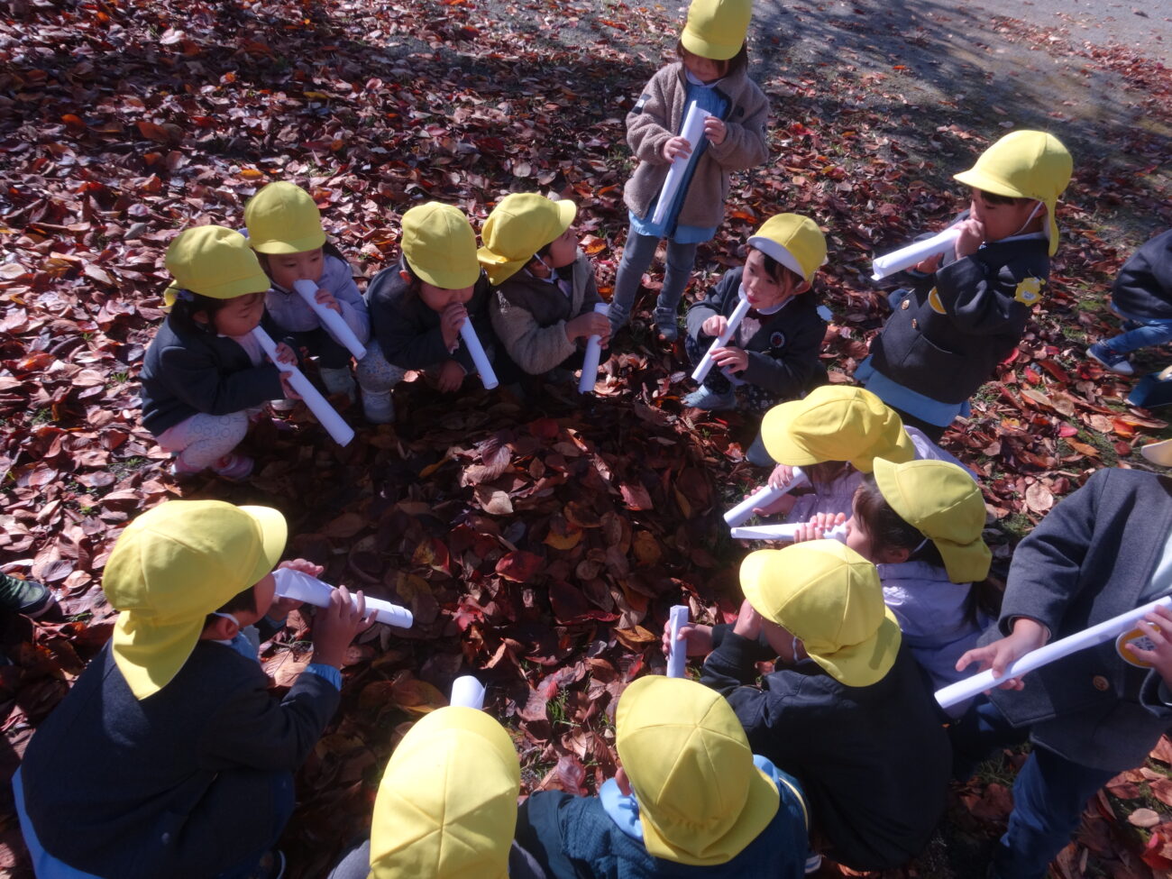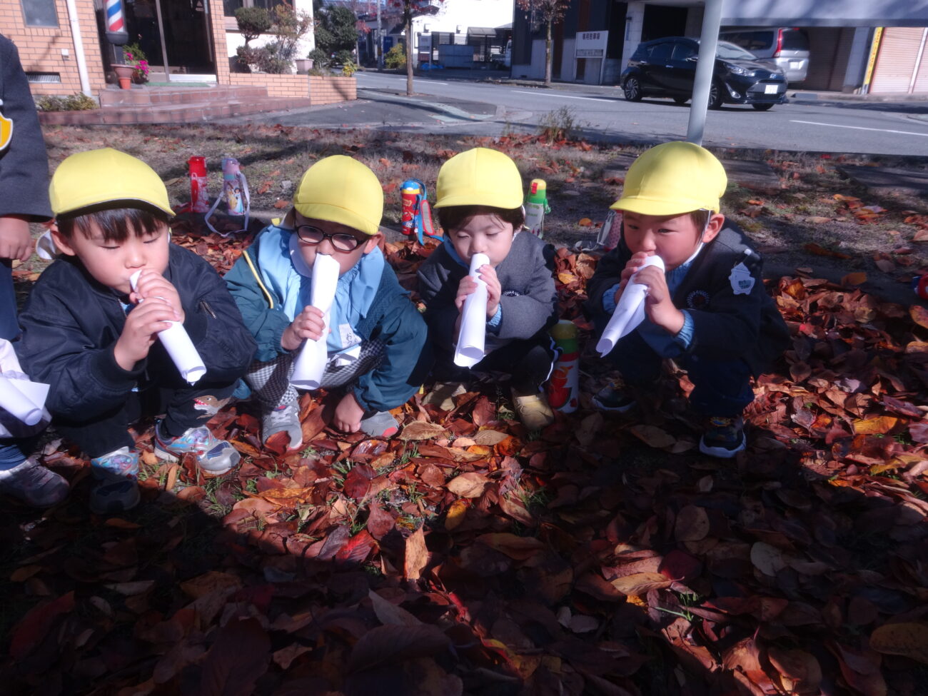 みんなで落ち葉の山を作ったり、クルクルと丸めた棒を使って息を吹きかけ、ホクホク焼き芋を作りました!