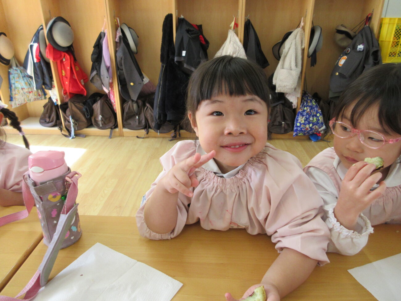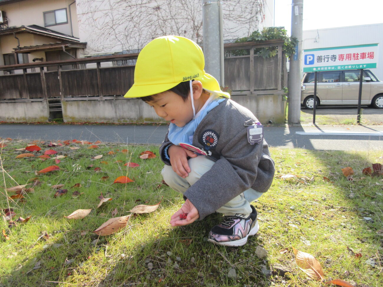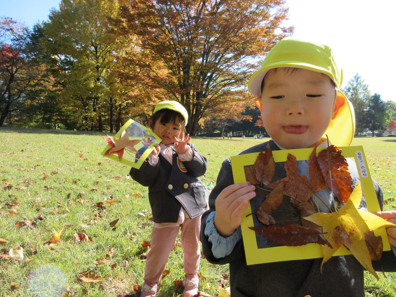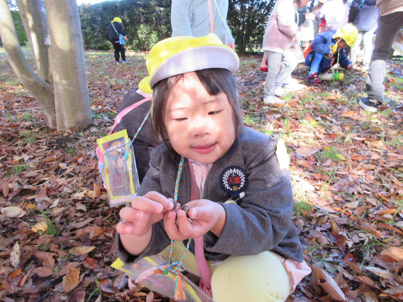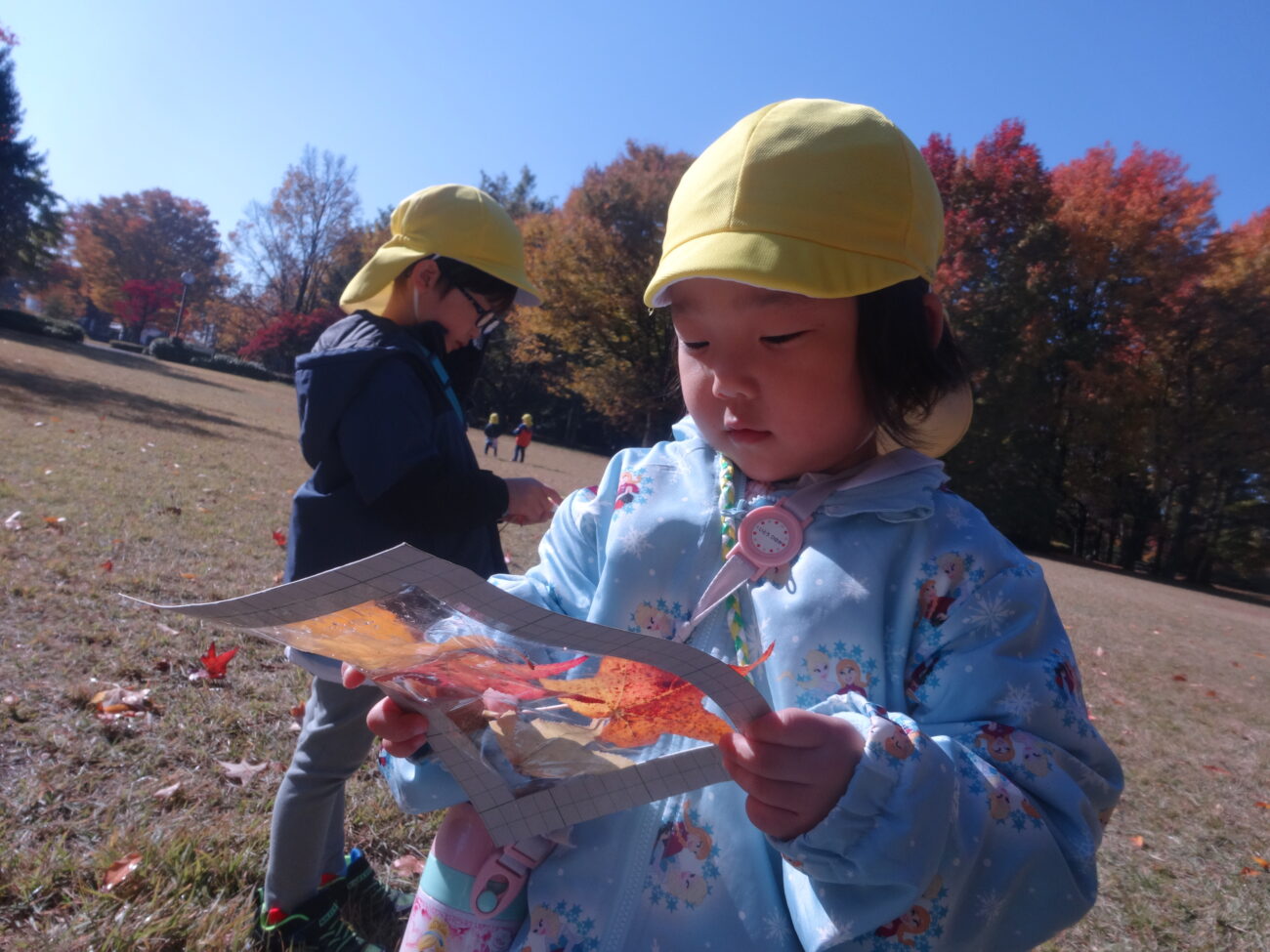 みんなで落ち葉の山を作ったり、クルクルと丸めた棒を使って息を吹きかけ、ホクホク焼き芋を作りました!