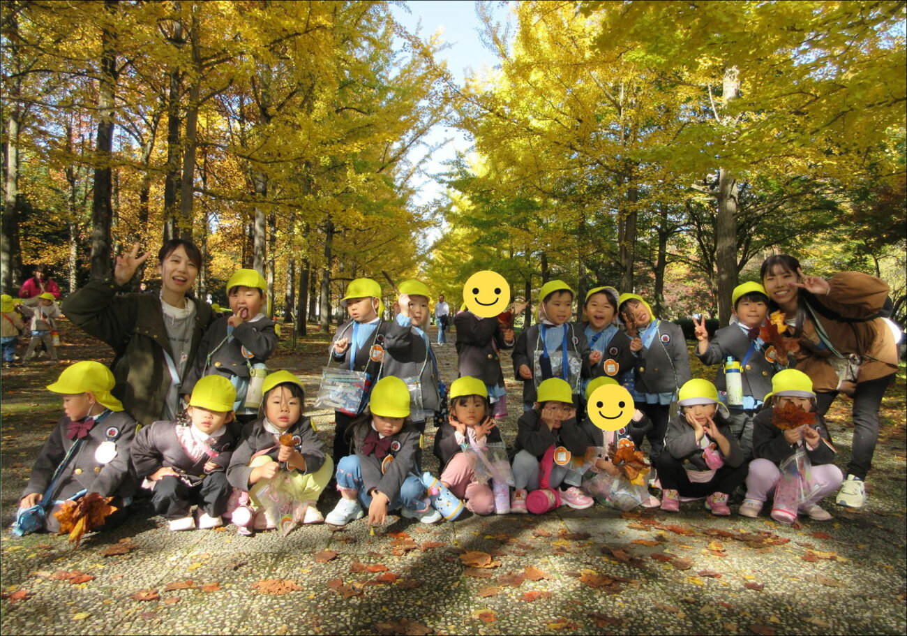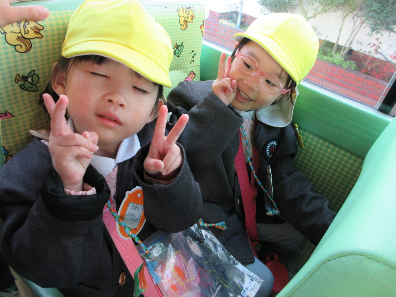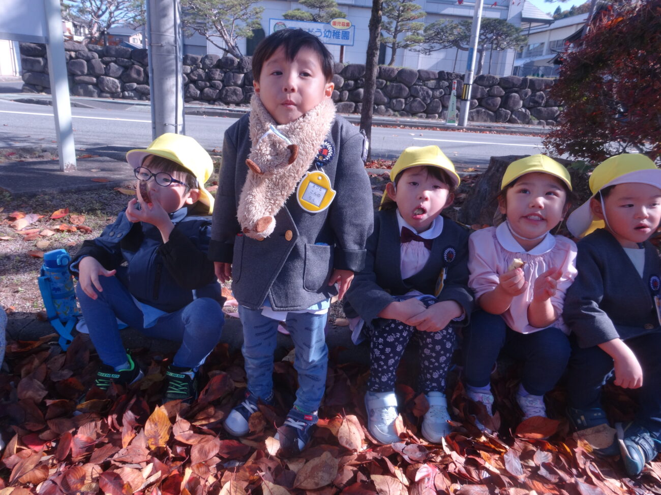 年少組みんなで大きなバスに乗り、運動公園の紅葉を見に行きました🍂