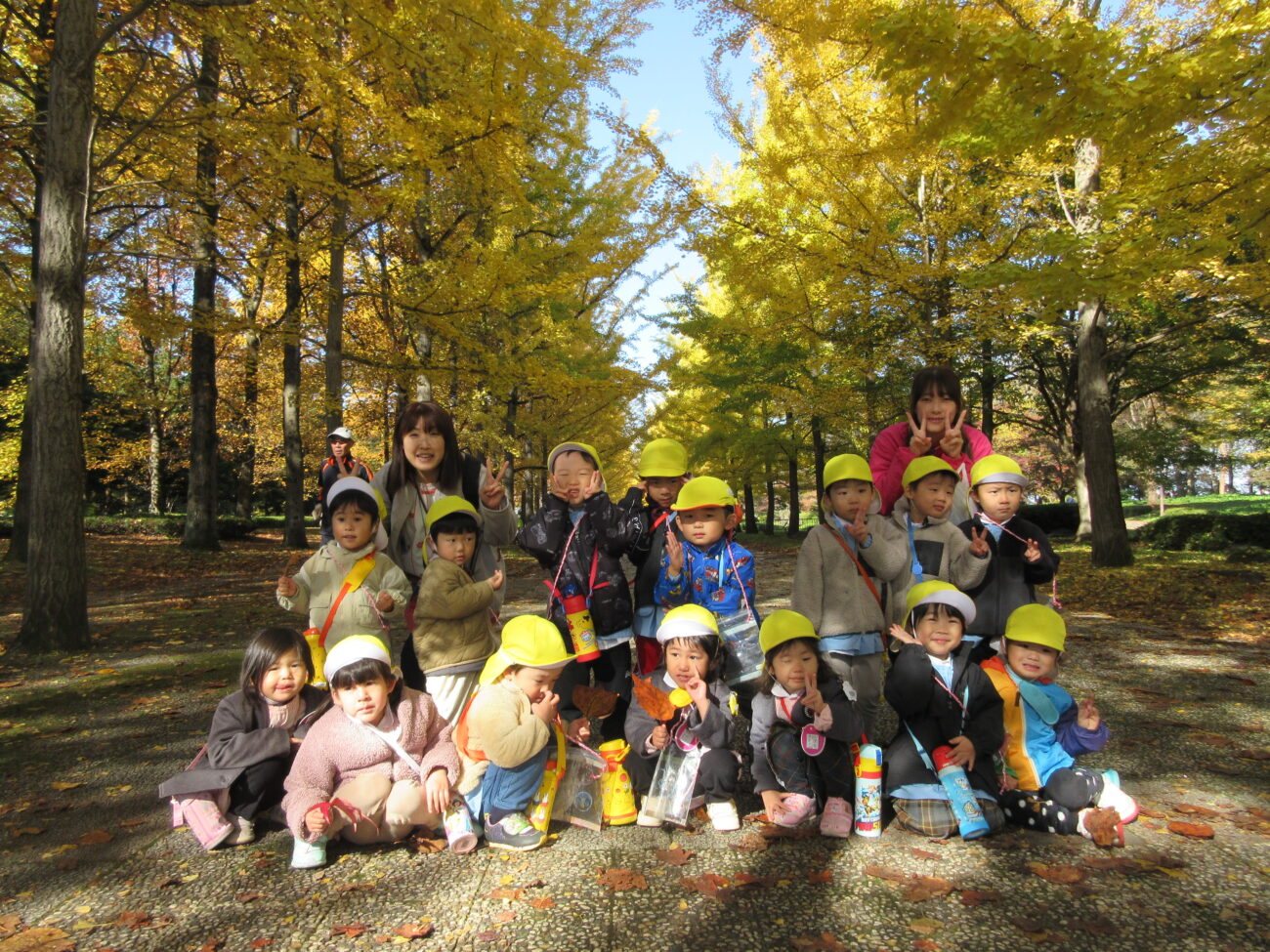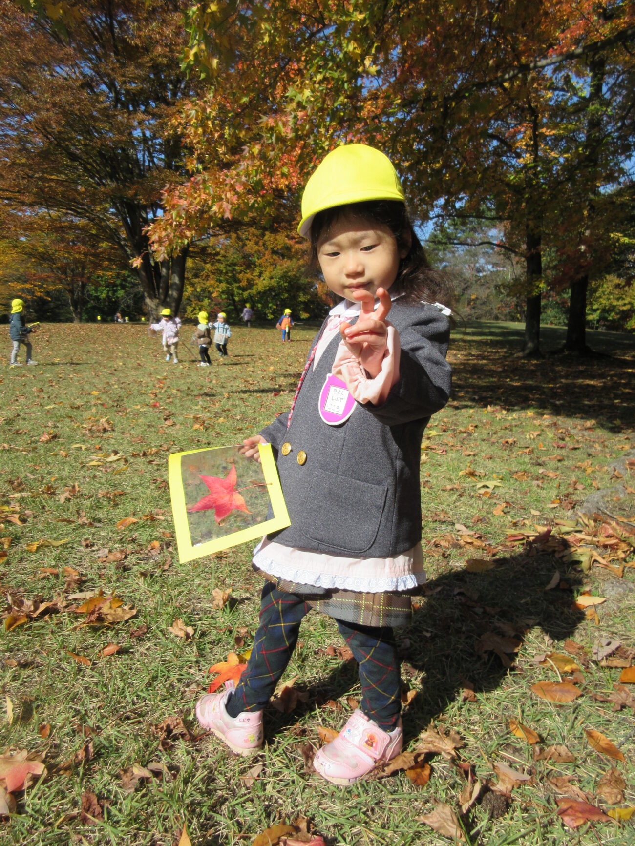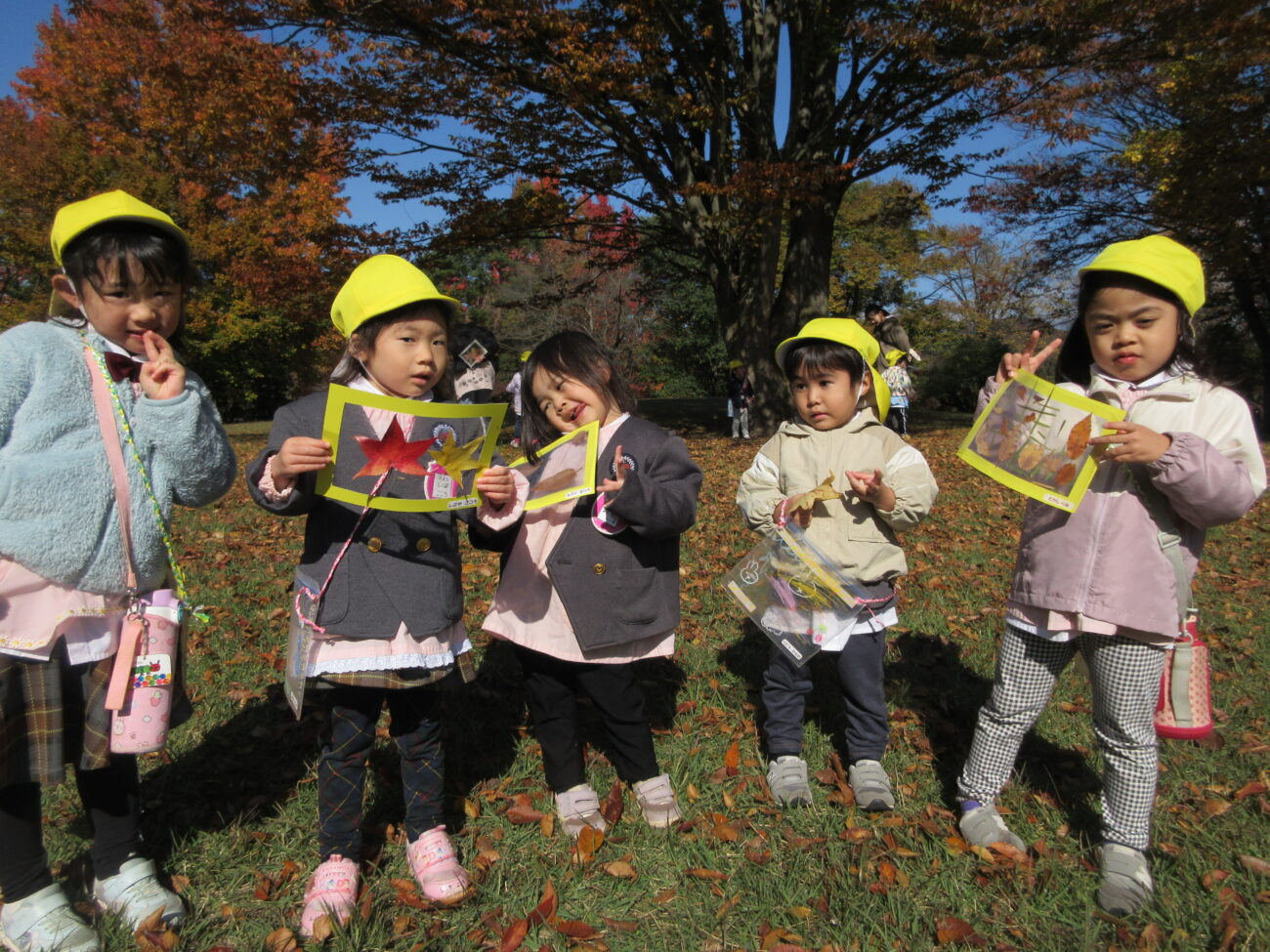 年少組みんなで大きなバスに乗り、運動公園の紅葉を見に行きました🍂