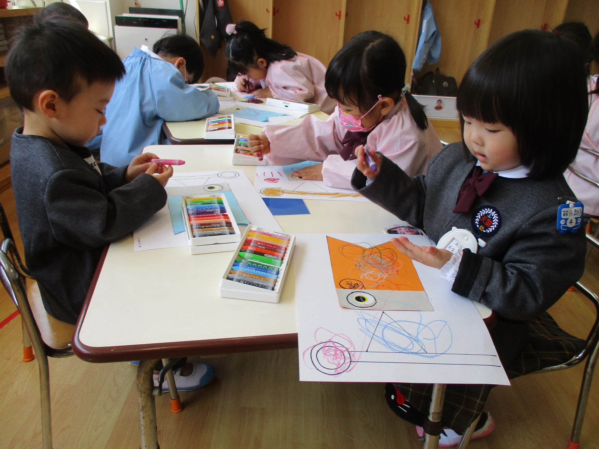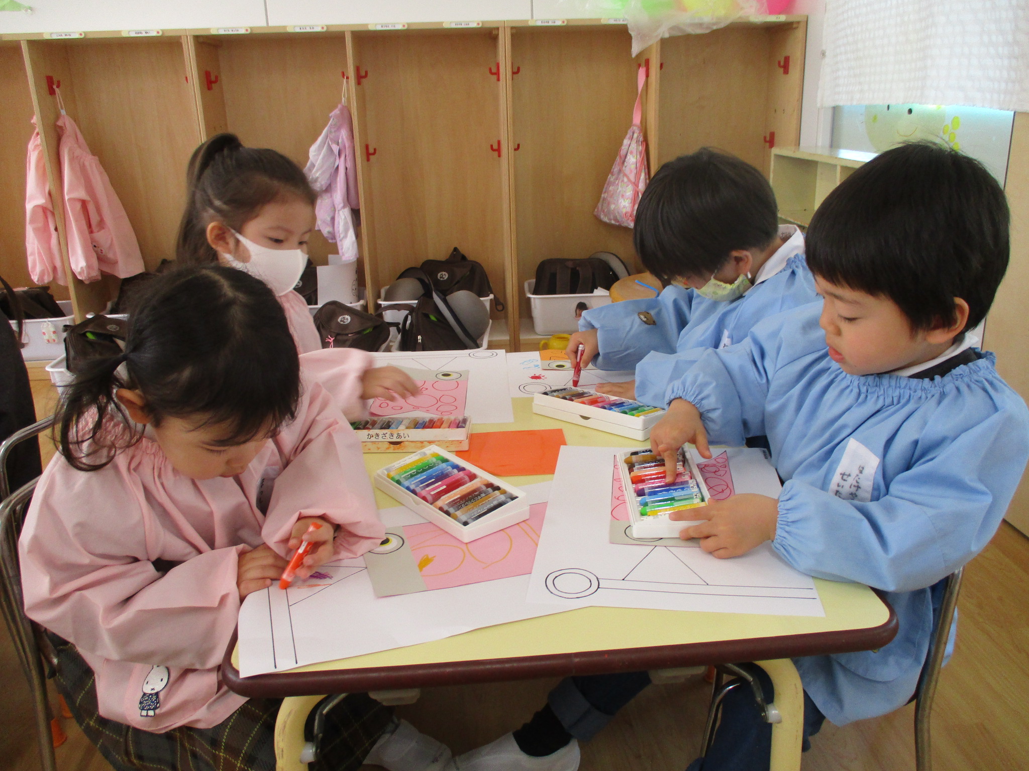 先日、園庭で泳いでるこいのぼりを見ながらこいのぼり製作をしました。