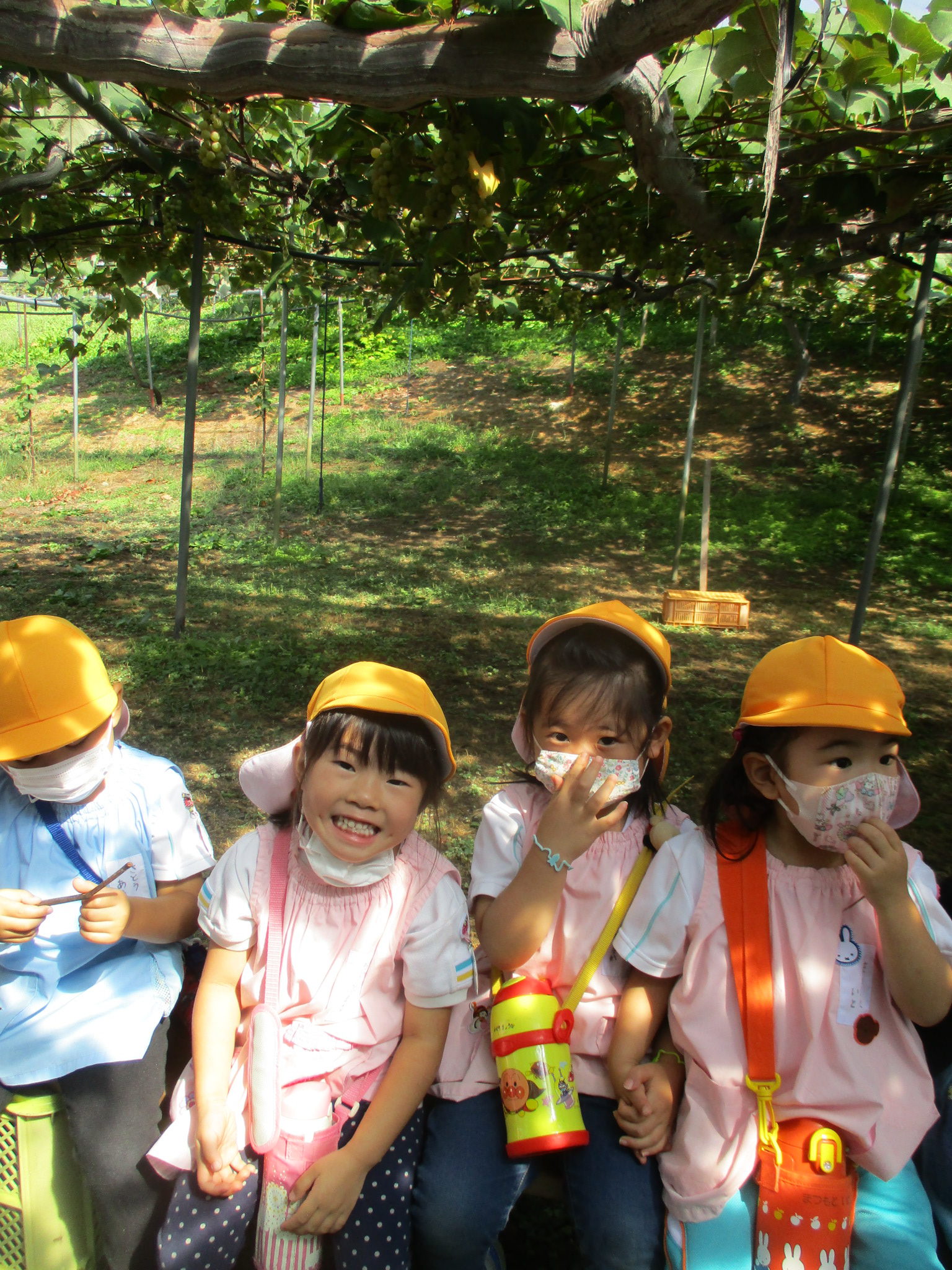 ぶどうはどんな風になっているのか、どんな匂いか…木になってるぶどうを初めて見る園児もいて大興奮でした♪