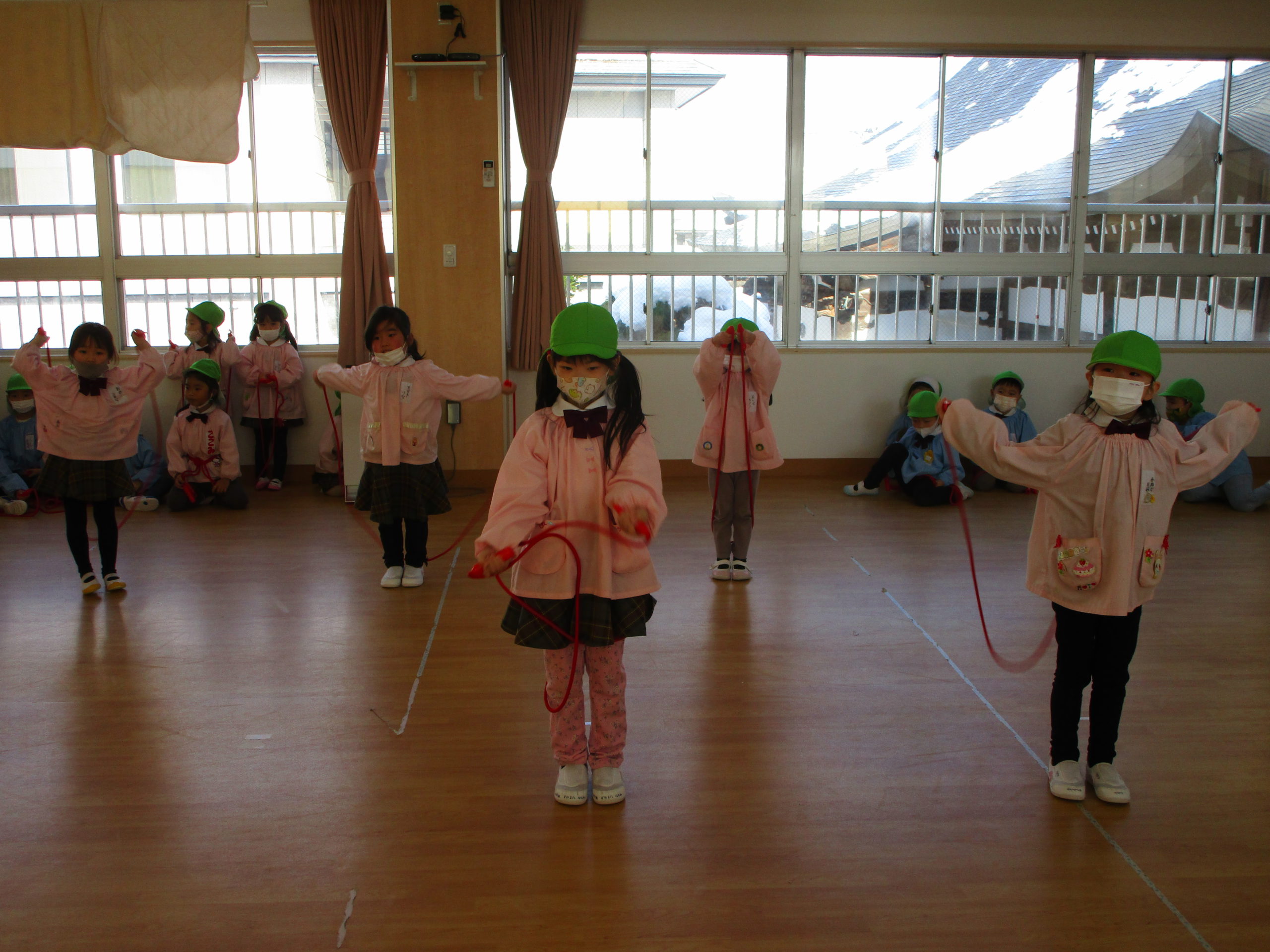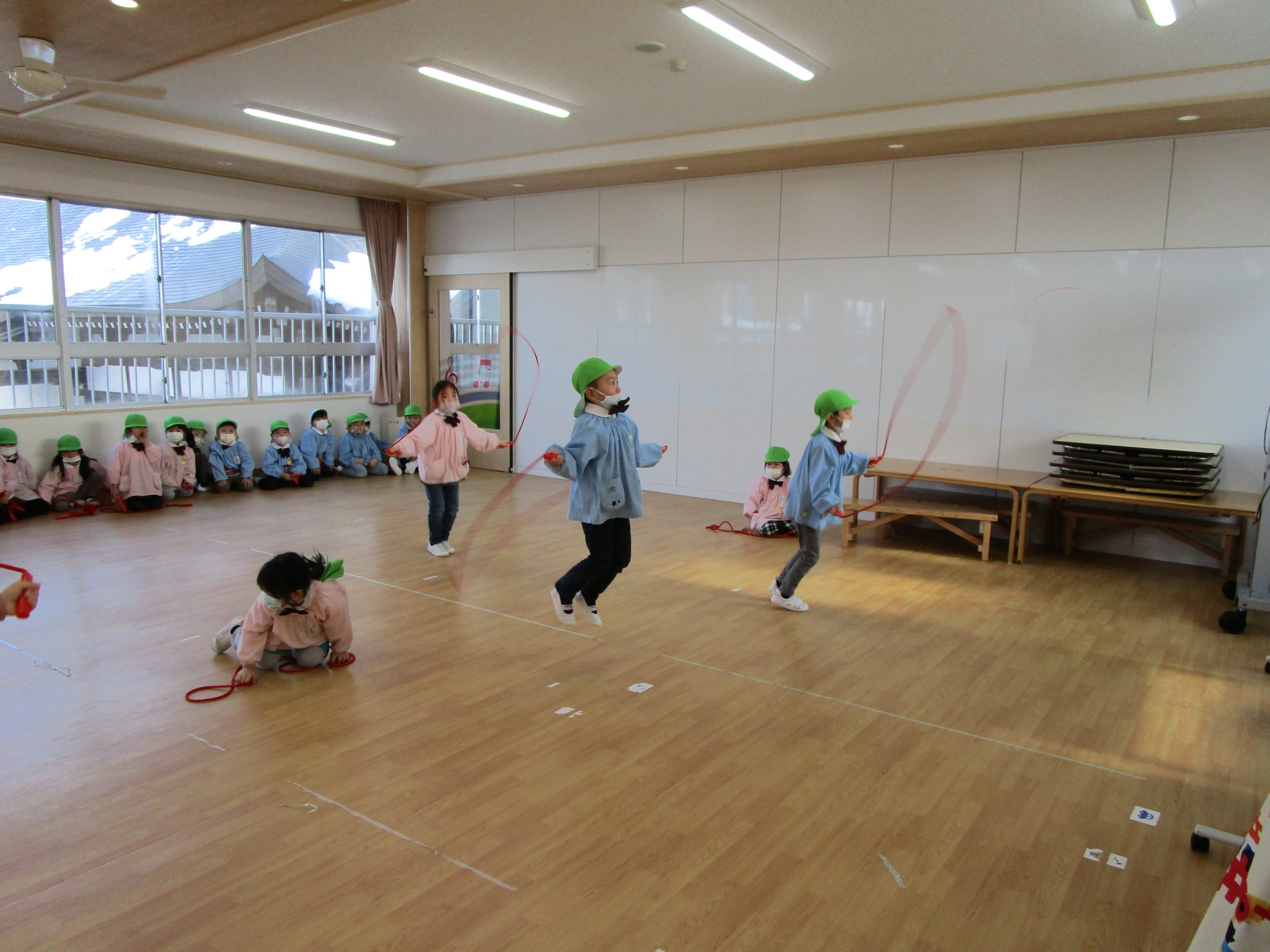 さすが年長さん。前跳び、交差跳び、あや跳びそしてなんと二重跳びが出来るお友達も!!これにはびっくり仰天😲😲