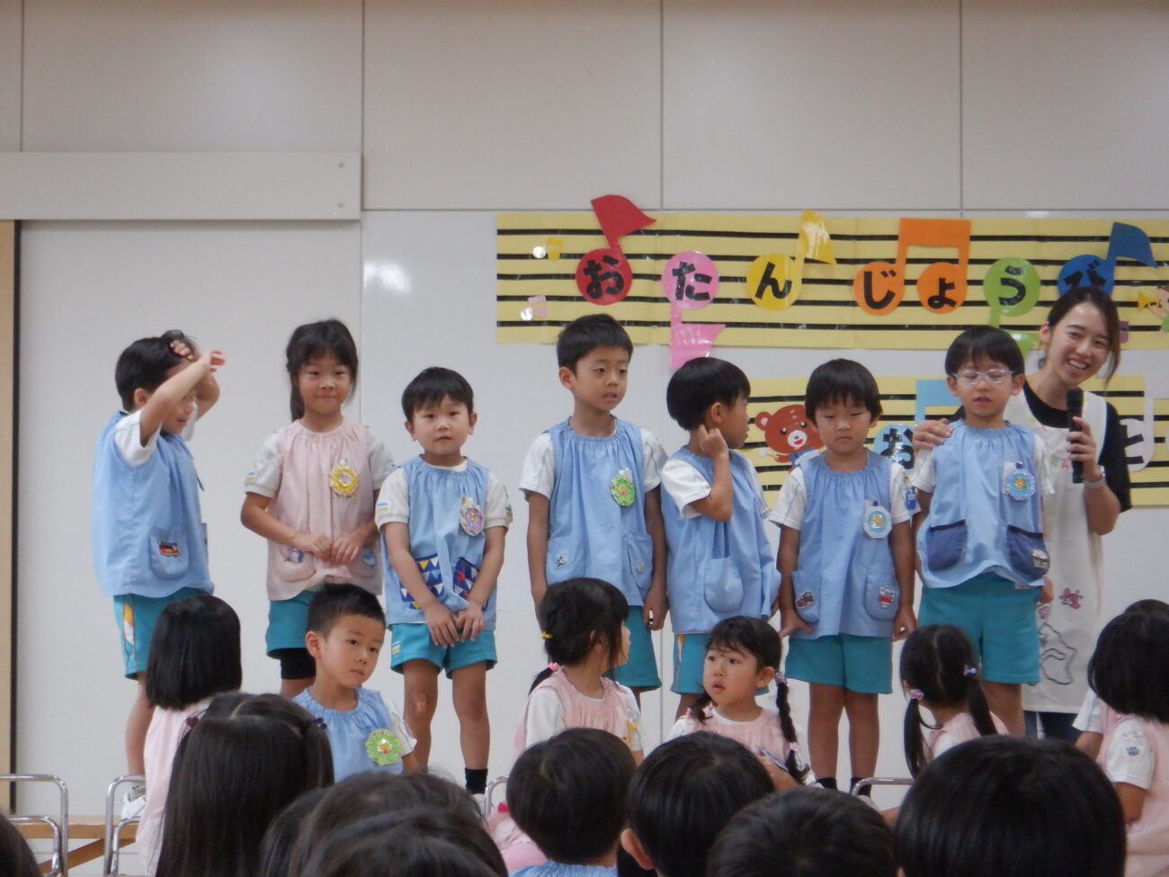 お遊戯室でみんなで集まる誕生会はワクワクするね!