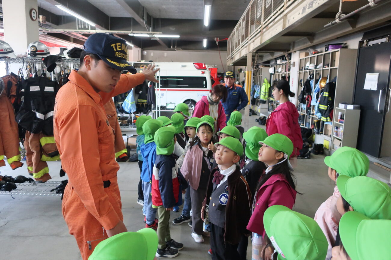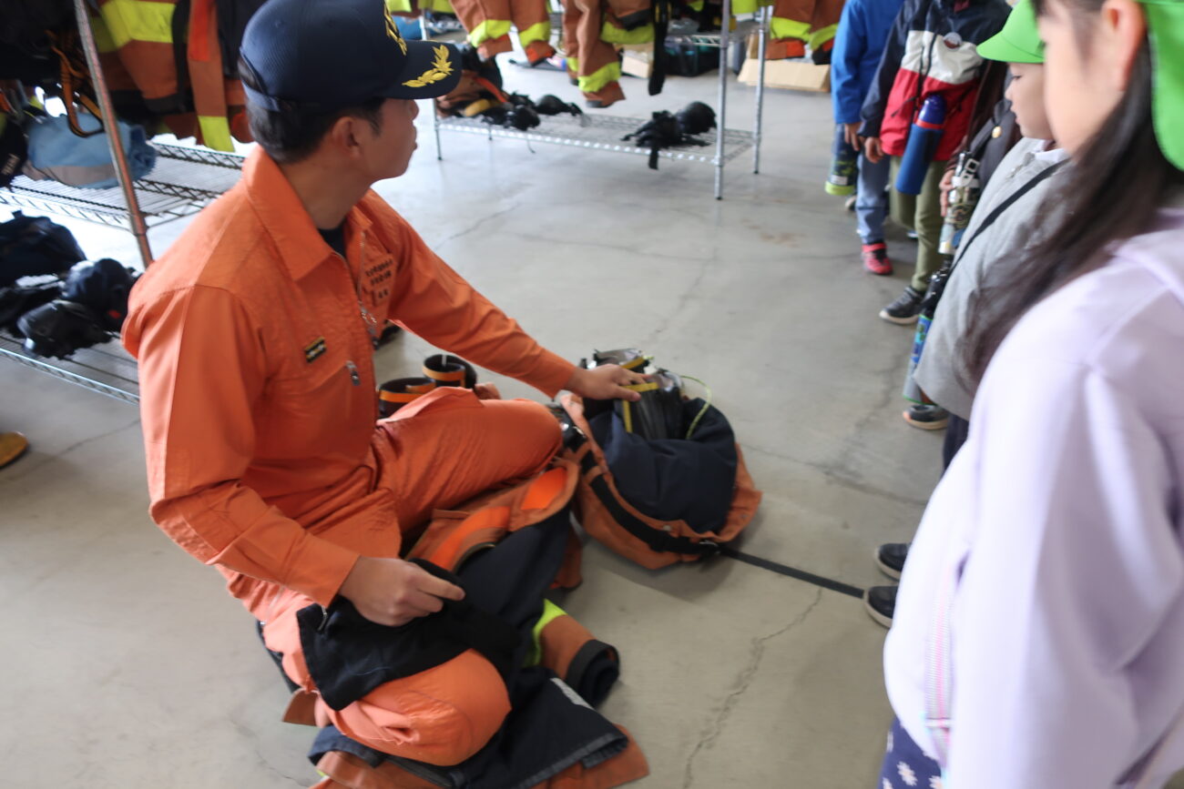 消防士さんに救急車や火事の時に着る服について説明をしてもらいます👂