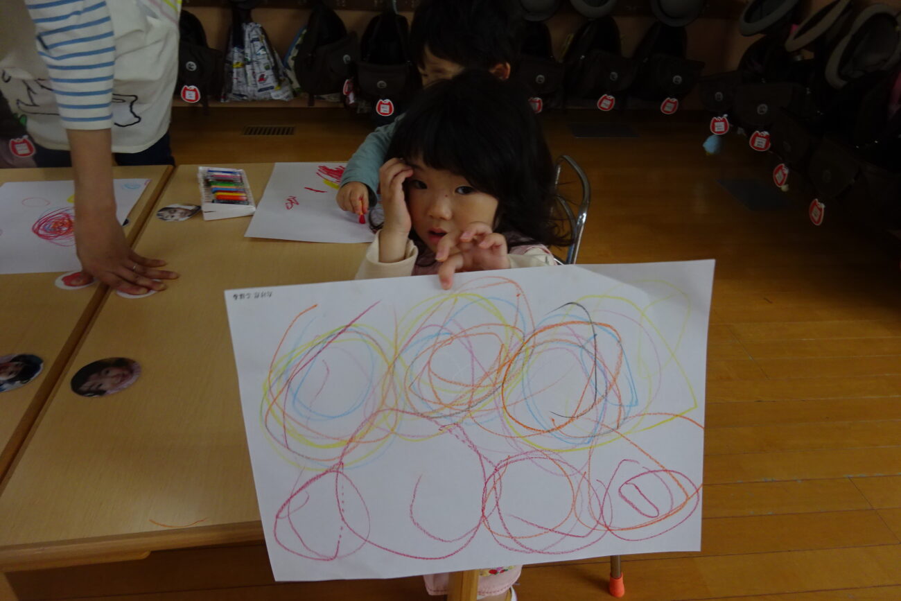 見つけたら白い紙に大きくぐるぐる描きしました!