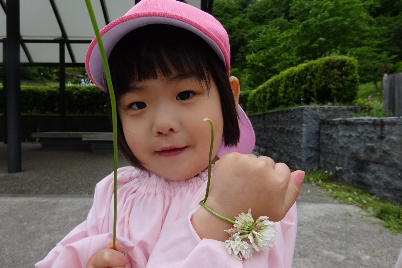 頭を隠し身体を小さく丸めるポーズを、園では「ダンゴムシポーズ」と呼んでいます。