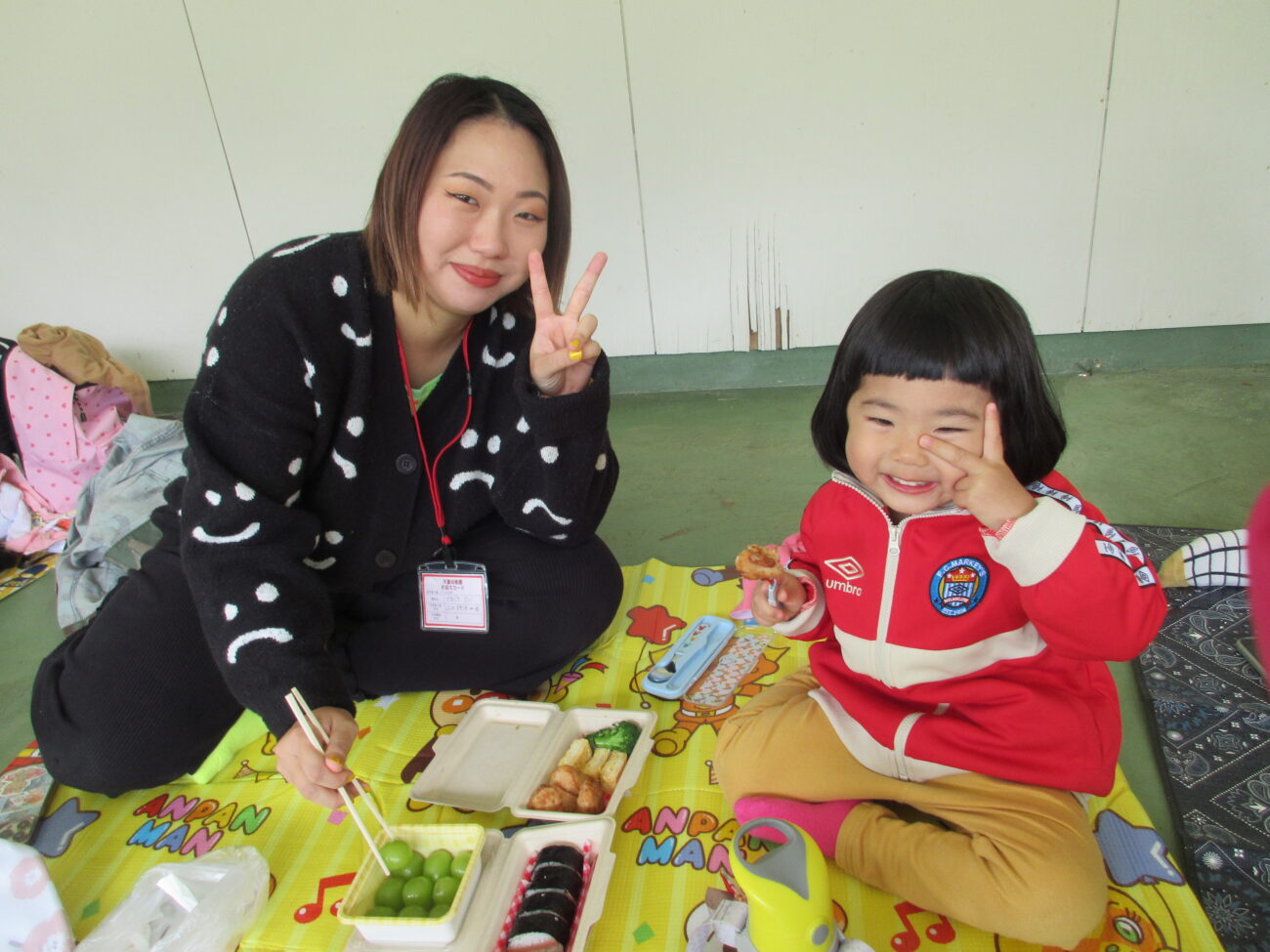 NEW 2025年10月24日 満3歳児さん 遠足楽しかったね🌷 先日、満3歳児の親子遠足がありました。 少し肌寒くはありましたが、欠席もなくみんなで楽しむことができました🎵 みんなの大好きなマッチョ体操をして体を温めて、タオルを使って引っぱりっこー! 風船を落とさないように力を合わせてエイ✋ お家の人とお外で食べるお弁当は特別美味しいな🍱 みーんな仲良しちゅうりっぷ組さん🌷 またお出かけしようね♪